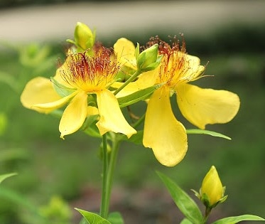 물레나물과의 여러해살이풀. 꽃이 물레바퀴모양이라는데서 붙은 이름이다. 줄기는 50~120cm까지 곧추 자라며 네모졌다. 잎은 마주 나며 버들잎모양이고 밑부분은 심장모양을 이루면서 꼭지 없이 줄기를 둘러 싼다. 7월경 줄기끝에서 고른살꽃차례를 이루고 노란색의 큰 꽃(직경 5cm정도)이 핀다. 꽃받침과 꽃잎은 5개씩이다. 수꽃술은 많고 꽃술대는 5개로 갈라 졌다. 열매는 닭알모양의 튀는열매이며 9~10월에 여물면서 다섯갈래로 갈라 진다. 열매에는 많은 씨가 들어 있다.