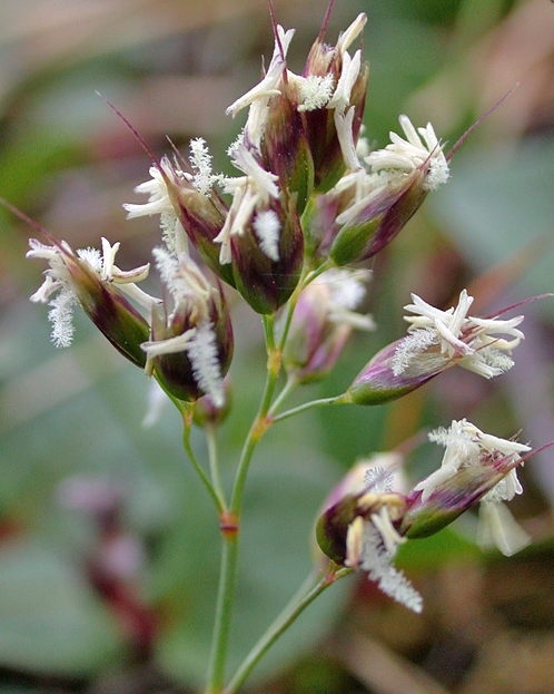 벼과의 여러해살이풀. 뿌리줄기는 짧고 수염뿌리가 모여 난다. 줄기는 곧추 서고 높이는 20~30cm이다. 잎은 밑에서 모여 나고 가는 줄모양이며 끝은 날카롭다. 줄기집은 질긴데 줄기집혀는 얇다. 7~8월경 가늘고 긴 줄기끝에 곧추 선 둥근 닭알모양의 고깔꽃차례(길이 3cm)를 이루고 작은 꽃이삭은 10개안팎인데 긴 닭알모양(길이 5~6mm)이며 3개의 꽃으로 되여 있고 노란밤색이다. 잎겨는 크고 꽃보다 길며 윤기가 있고 가운데는 검은보라색을 띤다. 수꽃술은 3개이며 씨앗집은 1개이다. 꽃겨에는 가스랭이가 있고 바깥꽃겨에는 털이 있다. 열매는 겨깍지열매이며 털이 없다. 향모와 비슷하나 향기가 없다.