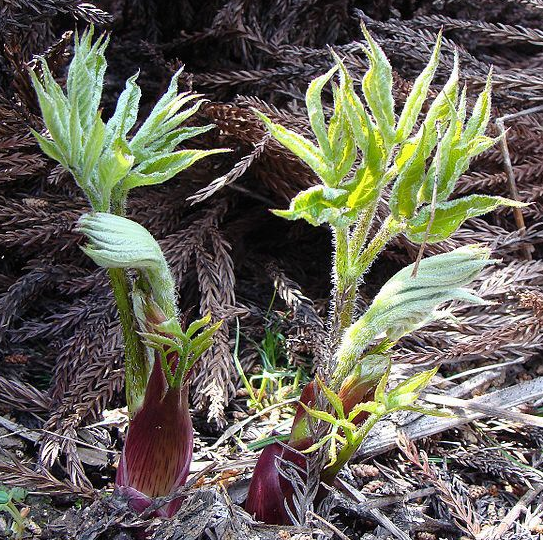 오갈피나무과에 속하는 잎이 지는 떨기나무. 뿌리줄기는 길게 가로 뻗는다. 줄기는 가지를 치지 않으며 높이 1m이상이고 바늘모양의 가시가 많다. 잎꼭지는 길며 짧은 가시가 많다. 잎몸은 큰데 너비 15~30cm이고 손바닥모양으로 얕게 5~7갈래로 갈라 지며 갈래쪽의 변두리에 작은 톱이와 가시가 있다. 잎겉면은 풀색이고 가운데 잎줄우에 작은 가시가 있으며 뒤면은 연한 풀색이고 잎줄을 따라 작은 가시가 배게 있다. 꽃은 6~7월에 잎아귀에서 나며 우산모양꽃차례들이 송이모양으로 붙고 꽃대에는 긴 털과 가시가 있다. 꽃싼잎은 장미색인데 인차 떨어 진다. 꽃잎은 버들잎모양의 삼각형이고 일찍 떨어 진다. 암꽃술대는 2개이며 보통 떨어 져 나나 때로는 절반까지 붙는다. 열매는 굳은 씨열매이며 둥글넙적하고 붉은색이다. 열매는 9월에 여문다. 번식은 씨와 땅속줄기가름으로 시킬수 있다.