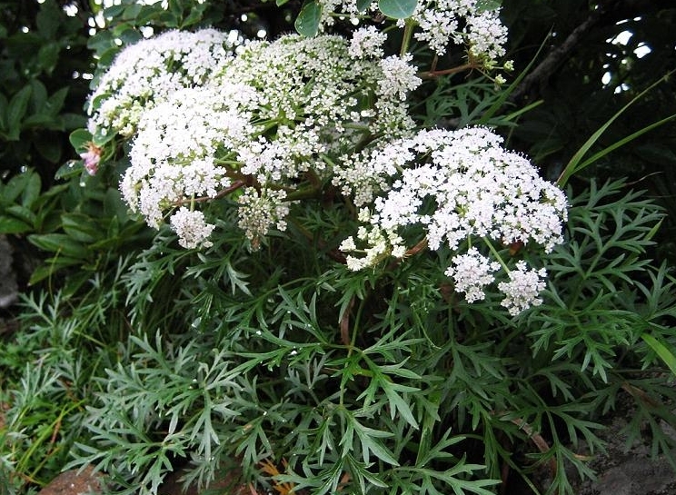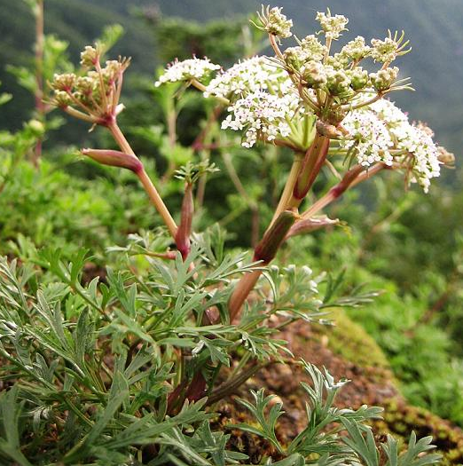 미나리과의 여러해살이풀. 줄기는 곧추 서고 높이 50cm안팎이며 가지를 친다. 잎은 어긋나게 붙고 잎꼭지가 길며 두번 갈라 진 깃모양겹잎인데 갈라 진 쪽잎은 버들잎모양이며 끝이 뾰족하고 잎꼭지밑부분에 줄기집으로 되여 줄기를 좀 둘러 싸며 흔히 붉은빛보라색을 띤다. 7~8월경 줄기와 가지끝에 겹우산꽃차례를 이루고 흰 꽃이 핀다. 큰 우산살모양 꽃가지는 20개이며 작은 우산살모양 꽃가지는 30개안팎이다. 꽃싼잎은 1~2개이고 작은 꽃싼잎은 많은 수이며 줄모양이다. 꽃갓은 작고 꽃잎은 5개인데 안으로 구부러 진다. 수꽃술은 5개이며 씨앗집은 아래자리이다. 열매는 타원형이다. 가는 기름나물에 비하여 잎의 갈라 진 쪼각은 너비가 약간 넓다.