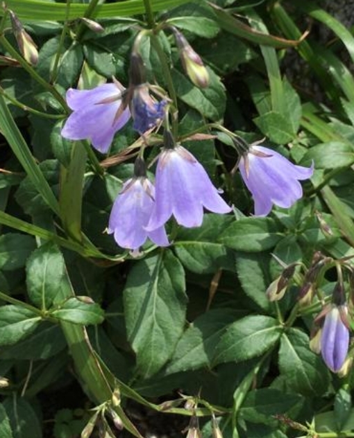 도라지과의 여러해살이풀. 줄기는 보통 외대로 곧추 자라며 높이 30cm정도이다. 줄기잎은 어기여 나거나 드물게는 3~4개씩 돌려 붙는다. 잎몸은 버들잎모양이거나 량끝이 좁은 길둥근모양이고 변두리에 고르롭지 못한 톱이가 있으며 잎줄우에만 털이 성글게 있다. 7~8월경 줄기끝에 푸른빛보라색을 띤 몇개의 종모양꽃이 고깔모양꽃차례를 이루고 드리워 핀다. 꽃받침쪽은 5개인데 꽃 필 때 옆으로 퍼진다. 수꽃술은 5개이고 변두리에 털이 있으며 암꽃술은 한개이다. 열매는 튀는열매이며 9월에 여문다.
