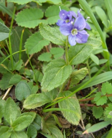 현삼과의 여러해살이풀. 식물체에는 센 털이 있고 뿌리줄기는 좀 짧고 수염뿌리가 난다. 줄기(높이 30cm안팎)는 1개가 곧추 서고 가지를 치지 않는다.