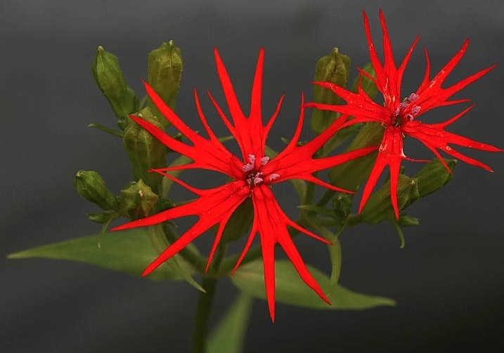 패랭이꽃과의 여러해살이풀. 줄기는 높이 50cm정도로 곧추 자라며 가지는 거의 치지 않는다. 잎은 마주 나며 긴 버들잎모양(길이 3~7cm, 너비 1~3cm)이고 밑부분은 줄기를 반쯤 감싼다. 잎변두리에는 짧은 털이 있다. 8월경 줄기끝에 고른꽃차례를 이루고 붉은색꽃이 핀다. 꽃직경 3cm정도. 꽃받침은 5개로 갈라 졌으며 꽃잎은 5개인데 가늘게 여러갈래로 깊이 갈라 졌다. 수꽃술은 10개이며 꽃술대는 5개이다. 열매는 길둥근모양의 튀는열매이며 8~9월에 여문다.