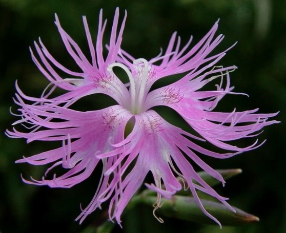 패랭이꽃과의 여러해살이풀이며 털이 없다. 줄기(높이 20~60cm)는 무더기로 나며 곧추 서고 가지를 치며 마디가 도드라졌고 풀색을 띤다. 잎은 마주 붙고 줄모양 또는 버들잎모양(길이 3~9cm)이며 량끝이 뾰족하고 밑부분은 마주 난 잎이 짧게 합쳐서 마디를 둘러 싸며 변두리는 톱이가 없고 연한 풀색을 띤다. 7~9월경 가지끝에 아름다운 연한 붉은색 꽃이 1개씩 핀다. 꽃받침은 가늘고 긴 둥근통모양(길이 2~3cm)이며 끝이 다섯갈래로 갈라 졌고 갈라 진 쪼각은 바늘모양이다. 꽃잎은 5개이며 꽃갓의 변두리는 실모양으로 깊이 갈라 졌고 밑부분에 수염털이 있다. 수꽃술은 10개이며 암꽃술대는 2개이다. 열매는 둥근 기둥모양의 튀는 열매이며 끝이 네갈래로 갈라 지고 꽃받침이 남아 있다.