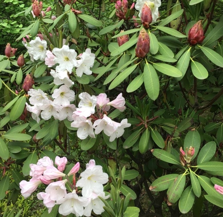 진달래과의 사철 푸른 떨기나무(높이는 보통 2~3m, 간혹 4~5m). 잎은 가지끝에 많이 모여 어긋나게 붙고 짧은 잎꼭지가 있다. 잎몸은 긴 타원형(길이 6~15cm, 너비 2~5cm)이며 끝은 둔하고 변두리는 매끈하나 뒤로 좀 말린다. 잎의 질은 뻣뻣한 가죽질이며 진한 풀색이고 윤기나며 뒤면에는 별모양의 털이 빽빽이 있다. 7월경 가지끝에 고른꽃차례를 이루고 흰색의 아름다운 꽃이 여러개 핀다. 꽃갓은 깔때기모양이며 다섯갈래로 갈라 진다. 수꽃술은 10개이며 암꽃술은 1개이다. 열매는 타원형의 튀는열매이며 긴 꼭지가 있고 9월경에 여문다.
