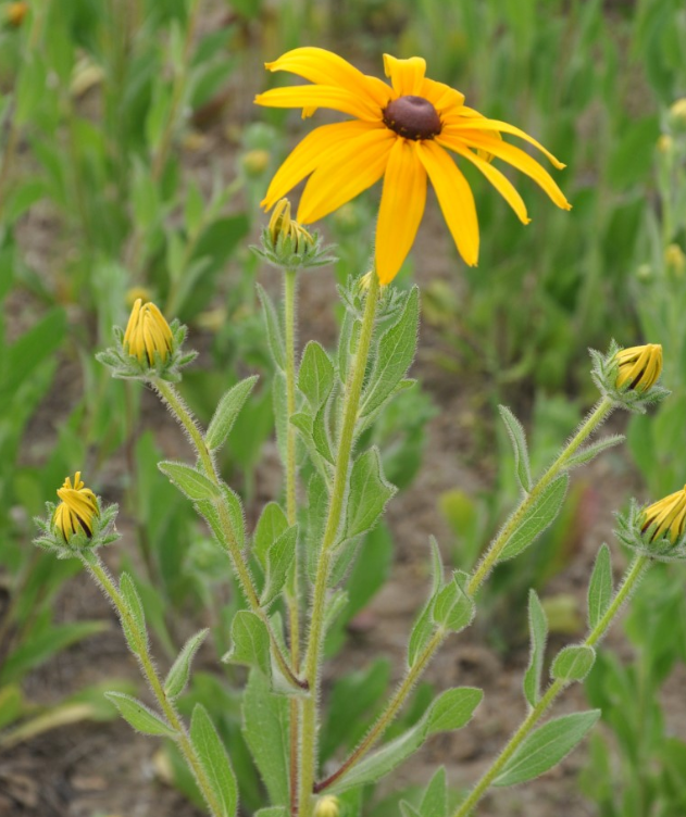 설상화는 노란 색이고 때때로 밑 부분이 갈색을 띠며 뒤로 젖혀지는 것도 있다.