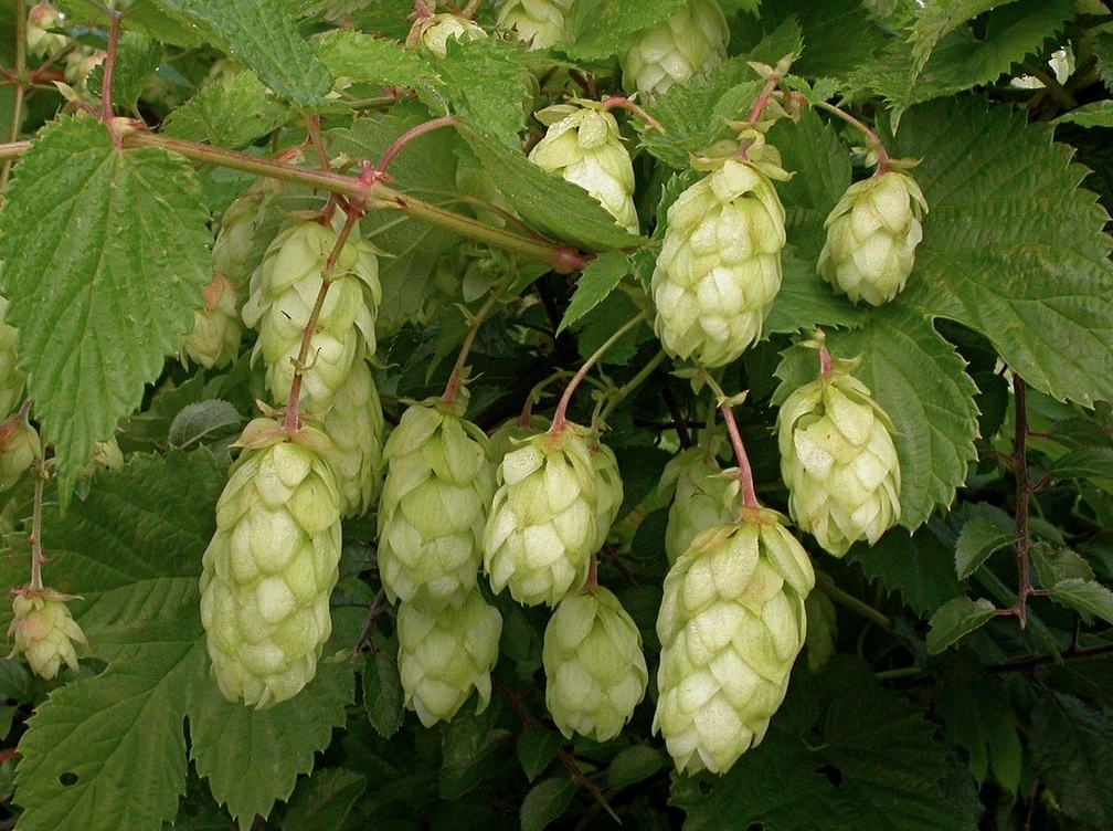 뽕나무과 한삼덩굴속에 속하는 여러해살이 뿌리묵이성기호작물. 호프(꽃가루)가 맥주와 의약품의 원료로 되는것은 꽃송이에 들어 있는 주요 성분들과 관련된다. 마른 꽃송이의 가루(루풀린)에는 물기 9~11%, 단백질 13~14%, 탄닌 2~6%, 총수지(총고미물질) 16~21%, 방향유(호프유) 0.3~1.0% 들어 있다. 이밖에 여러가지의 광물질과 펙틴이 들어 있다. 총수지에는 α-산[후물론(C₂₁H₃??O??)], β-산[루풀론 (C₂??H₃??O₄)]과 그의 산화물인 여러가지의 연성 및 경성수지를 비롯한 15개이상의 개별적화합물이 있다. α-산은 맥주의 고유한 맛을 돋구어 주면서 맥주효모균의 발효작용을 하게 한다. 탄닌은 맥주속에 있는 단백질을 가라 앉게 하여 맥주를 맑게 하며 거품이 오래동안 있게 한다. 방향유는 주로 테르펜유에 속하는 후물렌(C ₁??H₂₄)과 미루센 (C₁??H₁??) 등의 화합물로 이루어 져 있는데 맥주의 향기로운 냄새가 나게 한다. 그러므로 호프의 마른 꽃송이의 가루(루풀린)는 맥주에서 시원하고 상쾌한 냄새와 쌉쌀한 맛이 나게 하며 거품이 생겨 나 오래동안 있게 한다. 특히 맥주가 변질되지 않도록 하는데 맥주효모균만 발효작용을 하게 하면서 젖산균을 비롯한 다른 잡균들이 살아 퍼지지 못하게 한다. 호프의 기원에 대하여서는 아직 뚜렷하지 않으나 그것의 야생종은 유럽지역에 있다. 호프는 북위 35~60°지역과 남위 35~45°지역에 퍼져 있는데 주로 북위 50°안팎의 아시아와 유럽지역에서 많이 심어 가꾸고 있다. 이 지역에서는 온대지방에서 더 많이 심어 가꾸고 있다. 우리 나라에서는 바다기준높이가 700~1,000m인 량강도의 높은 산지대에서 많이 심어 가꾸고 있다. 여기에서 생산되는 호프는 품질이 매우 좋으므로 세계적으로 이름났다. 한삼덩굴속에는 야생종, 보통종(재배종), 아메리카종이 있다. 3개의 종가운데서 재배적가치가 있는것은 보통종(재배종)이다. 보통종 즉 재배종을 가리켜 호프라고 한다. 호프는 암수딴그루식물이므로 호프에는 암컷과 수컷이 있다. 호프꽃가루를 생산하기 위하여 심어 가꾸는 호프는 암호프이다. 암호프와 수호프와의 차이는 다만 꽃모양이 다를뿐이다. 호프는 땅속부분(뿌리부분)과 땅웃부분(줄기부분)으로 갈라서 본다. 땅속부분은 어미그루, 뿌리, 땅속줄기로 되여 있다. 어미그루에서는 뿌리와 땅속줄기, 줄기(덩굴)가 자란다. 뿌리는 원뿌리와 곁뿌리, 가는뿌리로 되여 있는데 땅속 2~4m의 깊이로 들어 가며 겉면이 거칠고 검은밤색이다. 땅속줄기는 어미그루의 눈에서 싹이 돋아 나 땅겉층에서 자라는데 연한 밤색이다. 매 마디의 눈에서는 새 뿌리와 싹이 자란다. 땅웃부분(줄기부분)은 덩굴과 곁가지, 잎, 꽃송이로 되여 있다. 덩굴은 어미그루의 눈에서 싹이 자라 다른 물체를 감으면서 10~12m까지 길게 뻗어 올라 간다. 덩굴의 가로자름면은 6각형이다. 덩굴의 모서리에는 갈구리모양의 뾰족한 가시가 많이 돋아 있다. 덩굴의 색은 품종에 따라 다른데 자주빛이 나거나 푸른빛이 난다. 덩굴의 마디에서는 곁가지와 잎이 돋아 난다. 잎은 덩굴과 곁가지의 매 마디들에서 한쌍씩 돋아 나는데 서로 마주 붙어 있다. 긴 잎꼭지에 붙은 잎은 끝이 3~5갈래로 갈라 진 손바닥모양인데 변두리에는 톱이가 있으며 잎의 앞면과 뒤면에는 가는 털이 있다. 암호프(호프를 생산하기 위해서 심는 호프)는 덩굴과 곁가지의 끝부분의 마디들에서 꽃송이가 달린다. 꽃송이는 생김새가 솔방울모양과 비슷하다. 품종에 따라 둥근모양, 닭알모양, 길둥근모양인것도 있다. 꽃송이에는 구불구불한 여러개의 마디로 된 꽃대가 있으며 꽃대의 마디에는 2개의 큰 꽃잎과 4개의 짧은 꽃줄기가 붙어 있다. 짧은 꽃줄기에는 작은 꽃잎이 붙어 있다. 작은 꽃잎아래의 구부러 진 부분에는 한개의 씨앗집이 있으며 씨앗집에는 2개로 갈라 진 꽃술머리가 있다. 그러므로 작은 꽃잎 하나가 한개의 온전한 꽃에 해당된다. 한개의 꽃송이에는 40~60개의 꽃이 핀다. 여러개의 꽃으로 된 꽃송이를 구화라고도 한다. 꽃송이의 크기는 3cm정도인데 한포기에는 3,000~4,000개의 꽃송이가 달린다. 꽃송이의 꽃잎들의 아래부분에는 루풀린이라고 하는 누른 꽃가루가 있다. 루풀린은 꽃잎세포의 루풀린샘조직에서 내보내는 특수한 분비물질이다. 여기에는 수지, 호프기름(향기름) 등과 여러가지의 조성분들이 있다. 수호프의 덩굴과 곁가지에서도 수꽃이 피는데 수꽃은 꽃판과 수꽃술로 되여 있으며 수꽃술의 끝에는 꽃가루주머니가 있다. 수꽃의 생김새는 수삼꽃의 모양과 비슷하다. 호프의 덩굴이 자라는 기간은 90~115일이며 5℃이상의 자라는 적산온도는 2,000~3,000℃이다. 호프는 낮은 온도에 견디는 힘이 세고 서늘한 기후조건에서 잘 자라는데 여름철의 기온이 20℃를 넘지 않는 곳에서 잘 자란다. 호프눈이 싹트는 온도는 3~5℃이며 덩굴이 자라는데 맞춤한 온도는 15~18℃이다. 그리고 꽃송이가 생기는데 맞춤한 온도는 17~18℃이다. 뿌리가 얼어 죽는 땅속의 온도는 -7~-12℃이지만 겨울기간에 눈이 많이 쌓이고 매일 온도변화가 심하지 않으며 땅누기가 맞춤한 곳에서는 -30℃정도에서도 얼어 죽지 않는다. 호프는 물기날기곁수가 300정도이며 가