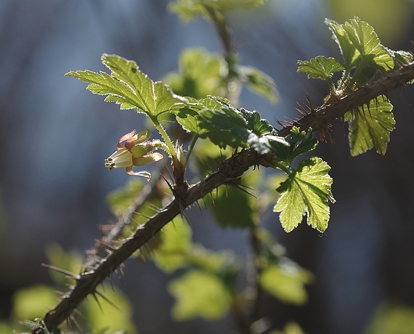 까치밥나무과의 잎지는 떨기나무. 높이 1m정도이며 줄기는 옆으로 뻗는다. 묵은 가지는 재빛을 띠며 굳은 가시가 많다. 잎은 어기여 나며 손바닥모양이고 얕게 다섯갈래로 갈라 졌다. 잎 량면에는 잔 털이 성기게 있다. 5~6월경 잎아귀에서 장미색의 꽃이 한개(간혹 2~3개)씩 드리워 핀다. 열매는 둥근 닭알모양의 물열매(직경 1~1.4cm)이며 8월경에 검은색으로 익는다. 번식은 씨로 하며 가지심기로도 시킬수 있다.