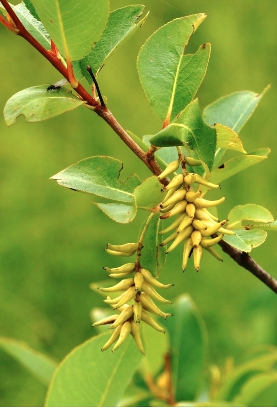 잎몸은 긴 타원형 또는 넓은 버들잎모양이며 길이는 2~8cm이고 너비는 2~4cm이다.