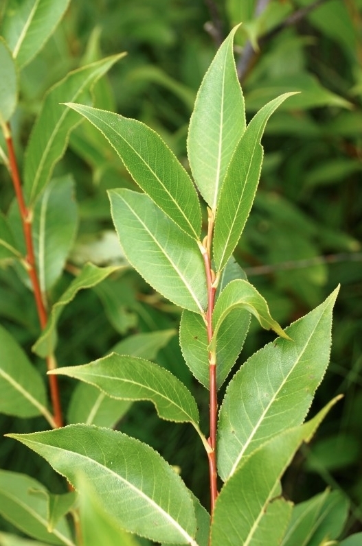 버드나무과의 잎이 지는 떨기나무이며 높이는 1~3m이다. 햇가지는 벽돌색이고 윤기가 있다.