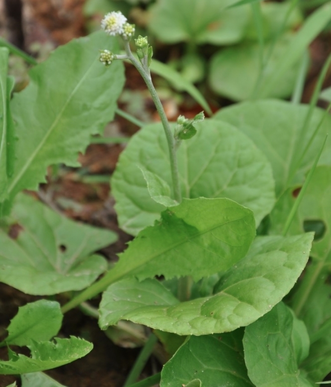 국화과의 여러해살이풀. 줄기는 곧추 서며 높이는 30cm안팎이다. 꽃줄기에 긴 닭알모양 또는 줄모양의 꽃싼잎이 어긋나게 붙어 있다. 뿌리잎은 잎꼭지가 대단히 길고 짧은 털이 있다. 잎몸은 둥근 심장모양이고 변두리에 고르롭지 못한 에움이 있다. 5~7월경 줄기우에서 갈라 진 가지끝에 흰빛이 도는 노란 꽃이 머리모양꽃차례를 이루며 고른꽃차례모양으로 배치된다. 꽃싼잎은 긴 닭알모양이며 꽃싼잎쪼각은 줄모양 또는 버들잎모양이며 끝은 뾰족하다. 머리모양꽃차례는 모두 관모양꽃으로 되여 있다. 열매는 여윈열매이며 흰 우산털이 있다.
