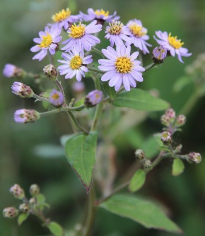 국화과의 여러해살이풀. 우리 나라 산과 들, 개울가에서 자라며 심어 기르기도 한다. 로씨야의 원동과 씨비리지방에도 있다. 높이 1.5~2m이고 곧추 자라며 웃부분에서 가지를 친다. 잎과 줄기에는 짧은 털이 배게 나고 껄껄하다. 뿌리잎은 모여 나며 생김새는 긴 길둥근모양 또는 버들잎모양이며 끝은 뾰족하다. 변두리는 톱이모양이다. 줄기잎은 어기여 나며 너비가 좁고 우로 올라 가면서 점차 작아 진다. 9~10월에 줄기웃부분의 가지끝에서 연한 보라색의 머리모양꽃차례가 여러개 모여 고른꽃차례를 이룬다. 꽃차례의 변두리에는 하늘빛가지색의 혀모양꽃이 핀다. 열매는 길둥근모양의 여윈열매이며 붉은밤색이 도는 흰색이다. 번식은 주로 포기가르기로 시키며 씨앗으로도 한다. 포기가르기는 4월 또는 10월에 하는데 뿌리줄기를 10~15cm 잘라서 심는다. 추위에 잘 견디며 생활력이 강하므로 한번 심어 놓으면 잘 퍼진다.