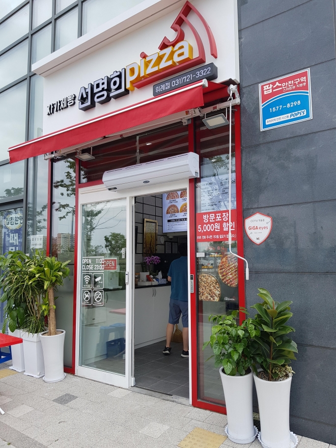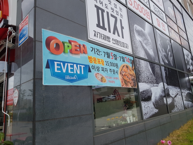 안 보고 지나치면 될 건데 이렇게 이벤트 현수막이 붙어 있으니 그냥 지나칠 수가 없는 피자