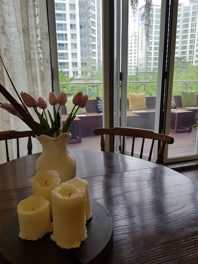 탁자 위에 놓여 있는 양초도 멋스럽다.