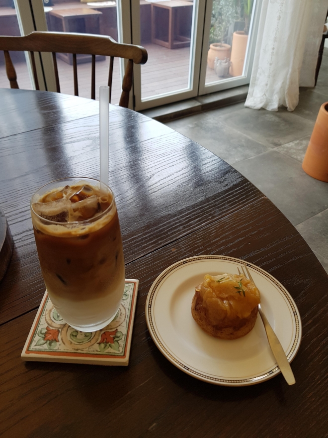 내가 주문한 아이스 카페라떼와 애플머핀!