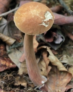 자루는 높이가 5~12㎝ 이고 원통형으로 속이 차 있으며 기부는 약간 두껍다. 자루는 갓과 같은 색이고 약간 융기한 세로선이나 불명료한 그물망 모양이 있다.