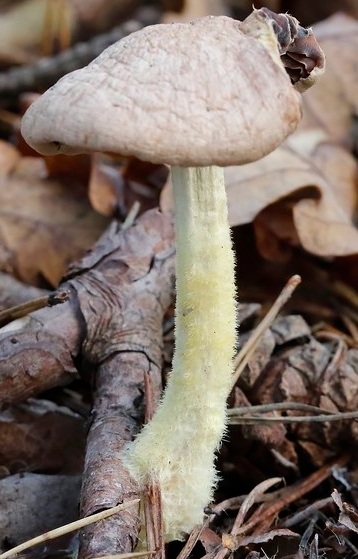 크기는 2.5~5㎝ × 0.2~0.3㎝이고 갓보다 옅은 색이며 가늘고 긴 원통형이다.