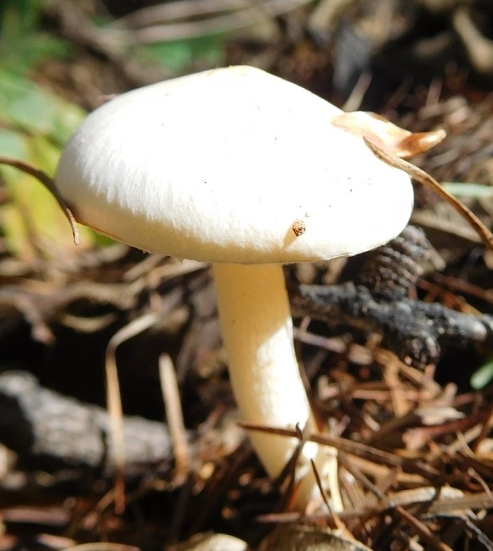 크기는 4.5~11 × 0.4~0.7㎝ 이고 다소 굴곡되고 아래로 가늘고 균모와 동색이며 끈적기는 없다. 꼭대기는 분상이다.
