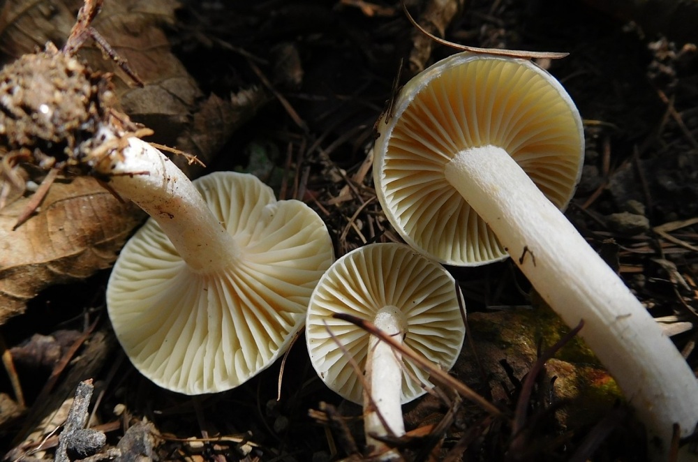 바른주른살의 내린주름살이고 거의 백색이며 성기다.