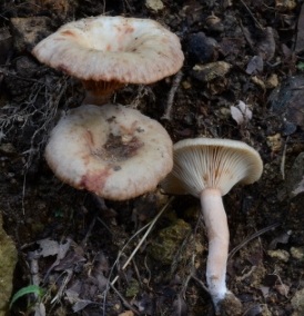 습할때 약간 끈적기가 있고 미세한 분상이고 회황갈색~회갈색으로 어떤곳은 황토색이다.방사상의 주름이 있다