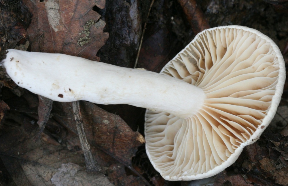 백색이지만 절단하면 공기에 접촉하여 홍색으로 변한다. 젖은 백색으로 분비후 건조하면 적색으로 된다. 매운맛이 있다.