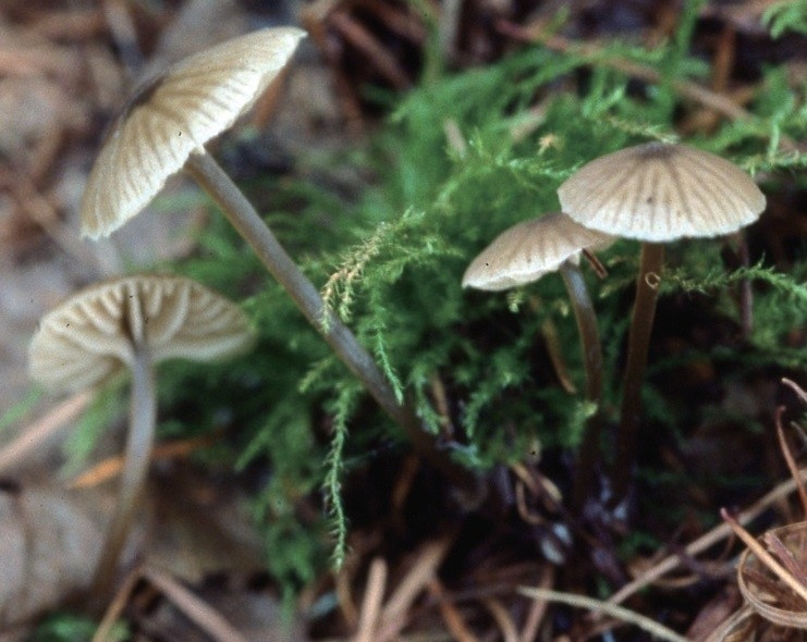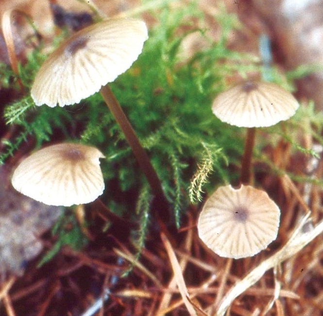 반구형~종형에서 편평하게 되나 가운데가 들어 간다.