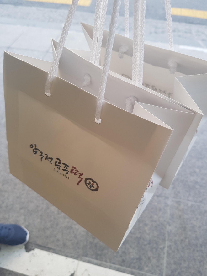 쇼핑백에 떡을 담고 기분 좋게 집으로 출발