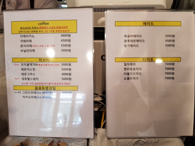 케이크도 판매하고 있었지만 우리는 곧 밥을 먹으러 갈 거니까 음료만!
