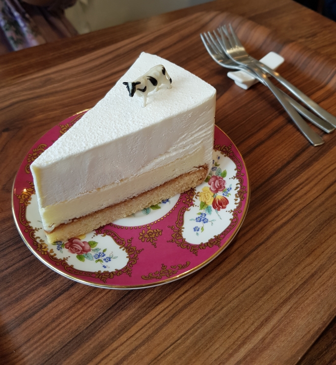 꾸덕꾸덕한 치즈 케이크의 느낌이 아닌 우유가 듬뿍 들어간 담백한 케이크