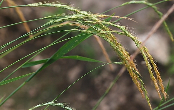 벼과의 여러해살이풀. 줄기는 모여 나고 우에서 곧추 서며 높이 15~80cm이고 잎과 함께 흰색이며 연한 털이 빽빽하게 있다. 잎은 어긋나게 붙고 좁은 버들잎모양(길이 5~15cm, 너비 2~4mm)이며 끝이 뾰족하고 밑은 줄기집을 이룬다. 줄기집혀는 넓은 닭알모양의 둥근모양이며 가늘게 갈라 진다. 6~7월경 줄기끝에 곧추 선 이삭모양의 긴 타원형고깔꽃차례(길이 5~15cm)를 이루고 꽃이 피는데 처음에는 풀색이나 다음에는 노란밤색 또는 풀빛밤색으로 변하고 꽃이삭밑에 흰 털이 빽빽하게 있다. 작은 꽃이삭은 닭알모양의 버들잎모양이며 2~3개의 꽃으로 되여 있으며 특이한 윤기가 난다. 잎겨는 긴 타원형이며 끝이 뾰족하고 변두리는 얇은 막질이다. 꽃겨는 좁고 긴 쪽배모양(길이 6mm안팎)이며 끝이 2개로 갈라 지며 바늘모양으로 뾰족하고 겉면은 껄껄하다. 가스랭이는 길고(길이 6mm안팎) 꼬이면서 구부러 진다. 수꽃술은 3개이며 꽃가루집은 줄모양(길이 1.5mm)이다.