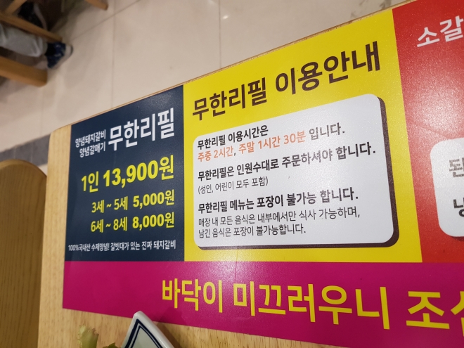 이곳은 원래 대게마을이었는데 무한리필 고깃집으로 메뉴를 바꾼 곳