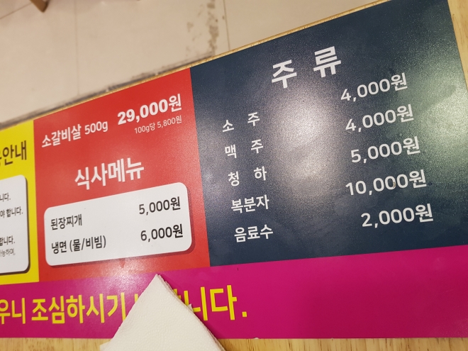 각 테이블 위에는 가격과 이용안내 내용이 있으니 참고하길!