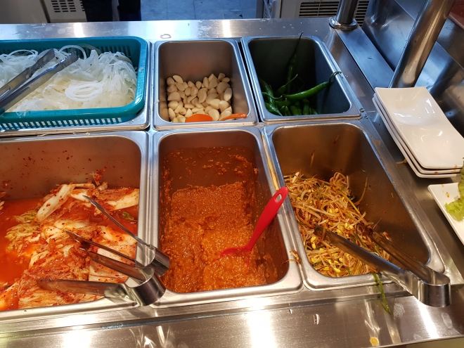 반찬은 모두 셀프, 주방 쪽 근처에 셀프 바가 준비되어 있으니 열심히 퍼서 나르기만 하면 된다.