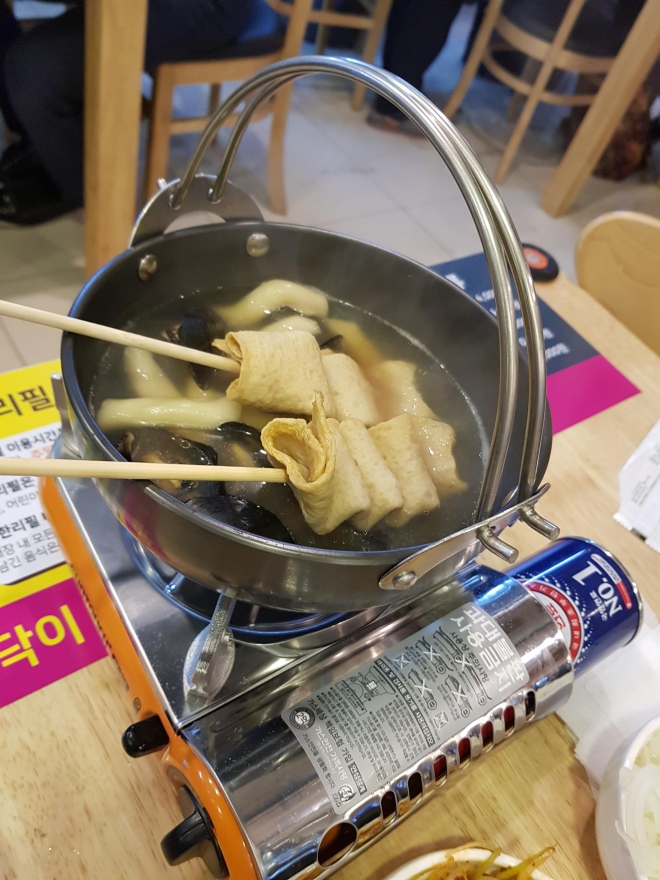 일단 반찬도 착착 담고, 따뜻한 어묵탕도 먹기 위해 냄비에 담기 시작