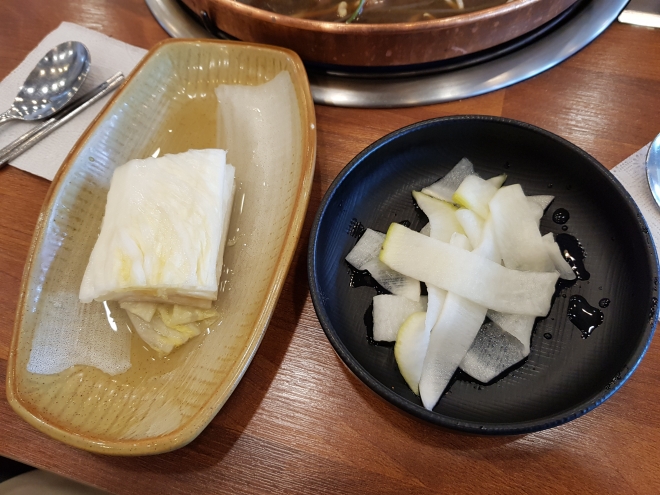 기본으로 나오는 찬 두 가지, 깔끔하다.