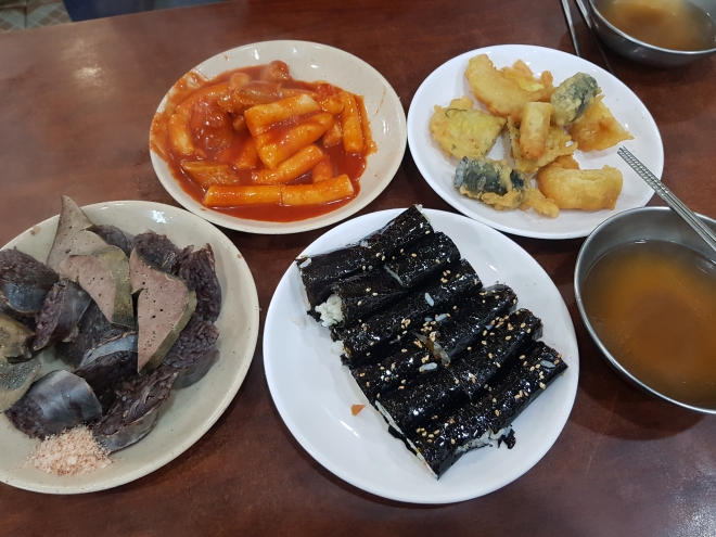 자리에 앉고 기대를 하며 주문한 떡볶이, 순대, 꼬마김밥, 튀김!