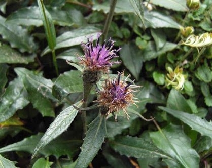 국화과의 여러해살이풀. 식물체에 밤색의 솜털이 빽빽이 있고 줄기는 곧추 서며 높이는 10~20cm이다. 잎은 어긋나게 붙고 잎꼭지가 있으며 줄기밑의 잎은 긴 닭알모양이고 웃잎은 버들잎모양 또는 긴 타원형이다. 모든 잎은 밑부분이 심장모양이고 끝이 뾰족하며 변두리에 날카로운 에움이 있다. 잎뒤면에는 흰밤색의 솜털이 빽빽이 있다. 8월경 줄기끝에 붉은보라색꽃이 큰 머리모양꽃차례를 이루며 한개 핀다. 꽃싼잎은 둥근 닭알모양인데 꽃싼잎쪼각은 기와이은모양으로 줄지어 있으며 닭알모양이고 끝이 날카롭다. 열매는 여윈열매이며 우산털은 연한 노란밤색이다. 솜분취에 비하여 줄기는 짧고 꽃은 좀 크다.