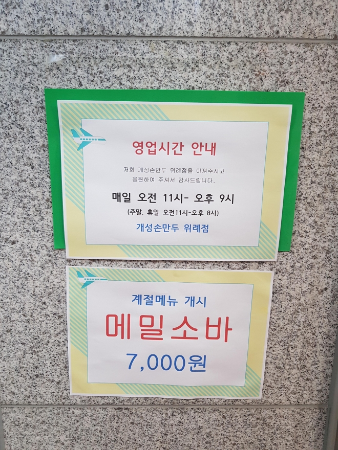 개성손만두의 영업시간과 계절메뉴 개시 안내