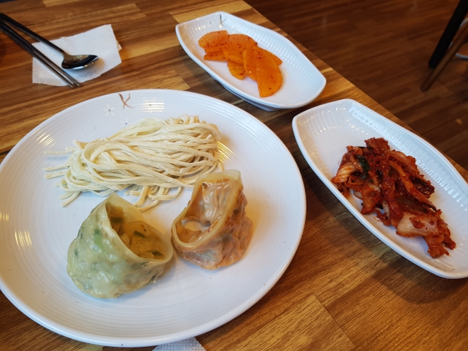 그리고 같이 나온 반찬과 칼국수 면과 만두 2개!