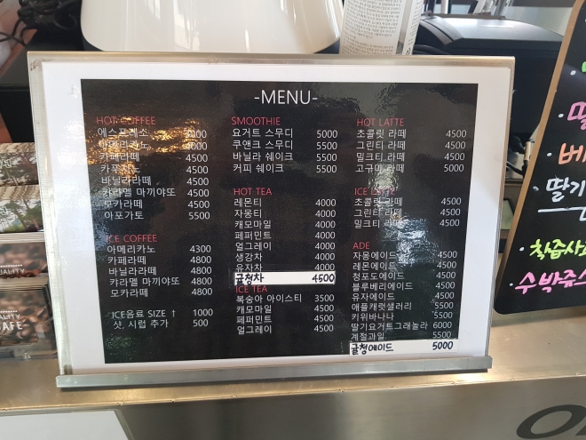 나만의 생각인지는 모르겠지만 주변 카페들보다는 음료가 저렴한 듯하다.