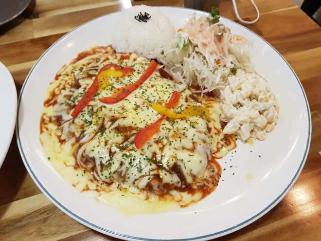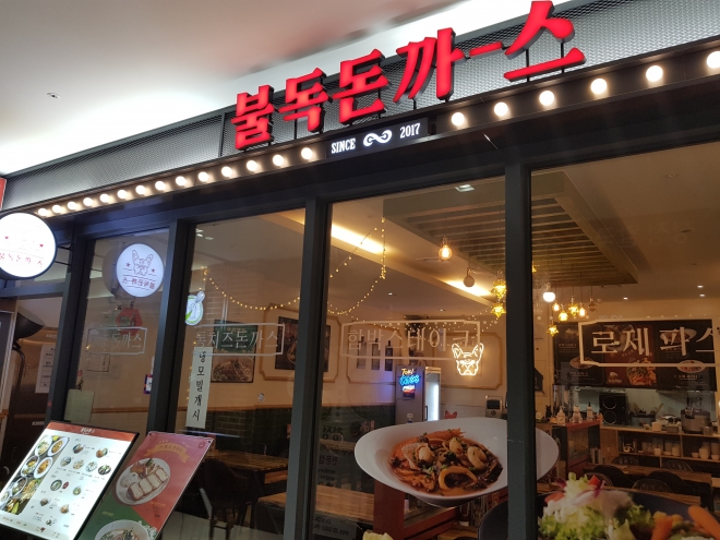 그 남자가 매운 치즈 돈까스를 먹자고 하는 바람에 돈가스만 급 메뉴 변경