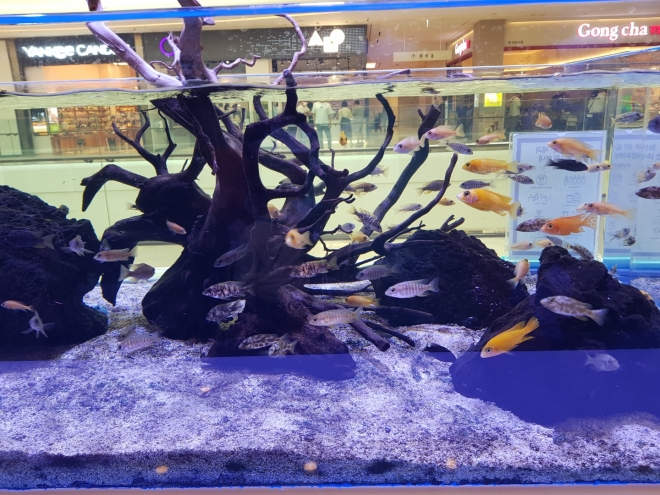 카페가 크지는 않았지만 눈이 즐거웠던 수족관 카페