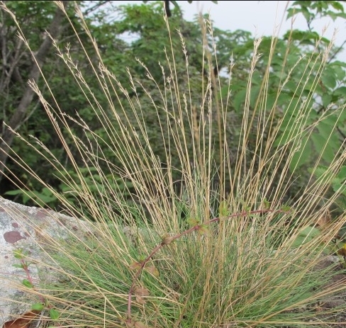 벼과의 여러해살이풀. 줄기는 모여 나고 곧추 서며 높이는 20cm안팎이다. 잎은 모여 나고 바늘모양이며 줄기보다 짧고 흰풀색이며 질이 굳다. 꽃은 6~7월경 줄기끝에 곧추 선 이삭모양의 고깔꽃차례(길이 3~5cm)를 이룬다. 작은 꽃이삭은 좀 납작한 긴 타원형(길이 7mm안팎)이며 4~5개의 꽃으로 되여 있고 흰풀색이다. 잎겨는 타원형의 버들잎모양이고 꽃겨보다 좁고 짧다. 바깥꽃겨는 긴 타원형의 버들잎모양(길이 4mm안팎)이고 끝이 뾰족하고 가스랭이는 길다. 수꽃술은 3개이다. 열매는 겨깍지열매이다. 이삭김의털에 비하여 식물체는 난쟁이형이며 꽃이삭이 성기게 붙고 긴 가스랭이가 있다.