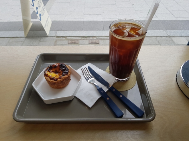 나는 역시나 아이스 아메리카노와 에그타르트를 주문