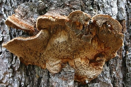 나무혹버섯과의 여러해살이버섯. 우리 나라를 비롯하여 아시아, 유럽, 북아메리카 등에 퍼져 있다. 자실체는 자루가 없으며 목질이다. 버섯갓은 반둥근모양, 말발굽모양이며 크기는 2~10cm×4~20cm×2~9cm이다. 겉면은 거칠고 둥근 홈과 틈이 있고 연한 털이 있거나 없으며 어두운 밤색이거나 검은밤색 또는 검은색이다. 변두리는 둔하거나 날카로우며 버섯갓보다 약간 연한색을 띠고 아래면에는 무성대가 있다. 버섯살의 두께는 1~6mm로서 얇고 어두운 밤색이다. 자실층탁은 명확하지 않은 층을 이루는데 오랜 층은 막혀 있고 새 층은 비여 있으며 두께는 0.2~6mm이다. 공구는 둥근모양 또는 엇갈림모양이고 크며 1mm사이에 1~3개 있고 재색 또는 재빛밤색이다. 강모체는 많은데 송곳모양이고 밤색이다. 포자는 둥글고 매끈하며 색이 없거나 후에 연한 밤색으로 된다. 크기는 4~6μm×4~5μm이다.