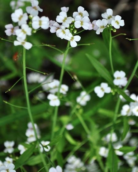 배추과의 여러해살이풀. 줄기(높이 30cm)는 곧추 서거나 누워 뻗고 질은 연약하다. 뿌리잎은 모여 나고 잎꼭지가 길며 깃모양으로 갈라 지고 끝부분 갈래쪼각은 닭알모양이며 변두리는 매끈하다. 줄기잎은 어긋나게 붙으며 잎꼭지가 있고 거꿀닭알모양 또는 타원형이고 변두리에 둔한 톱이가 드물게 있다. 6~7월경 줄기끝에 송이꽃차례를 이루고 흰색십자모양꽃이 약간 성기게 핀다. 꽃꼭지는 좀 길고 꽃갓은 직경 3mm안팎이다. 꽃받침쪽은 4개이고 타원형이다. 꽃잎은 4개이고 거꿀닭알모양이며 꽃받침쪽보다 배나 길다. 수꽃술은 네개긴수꽃술이고 1개의 암꽃술이 있다. 열매는 긴 뿔열매이며 길이 2.5cm안팎이고 익으면 두쪽으로 버그러지고 씨앗은 작다.