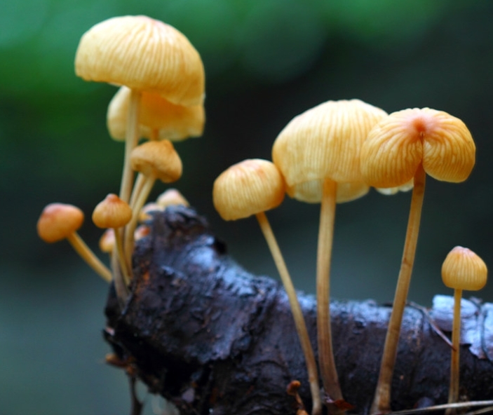 버섯갓의 직경은 보통 0.5~4cm이고 겉면은 흰색을 띤다. 버섯대는 길이가 3~6cm이고 반들반들하며 밤색을 띤다.