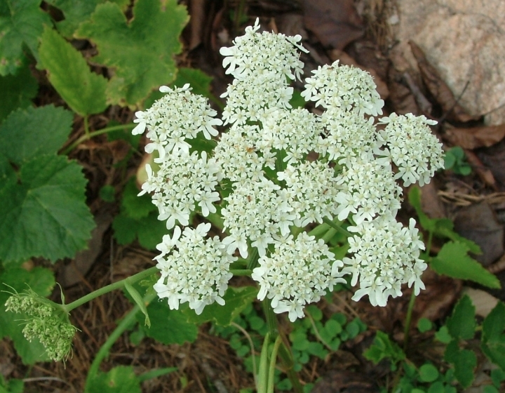 미나리과에 속하는 여러해살이풀. 뿌리는 곧고 직경 3~5cm이며 고기질이고 누른색이다. 뿌리에서는 곁뿌리가 난다. 줄기는 곧추 서고 높이 70~250cm이며 둥글고 날카로운 모난 줄이 있다. 잎은 엇선잎차례를 이루며 깃모양겹잎이거나 3개의 쪽잎으로 된 겹잎이다. 잎몸은 넓은 삼각형이며 길이 20~70cm, 너비 15~50cm이다. 옆의 갈래쪽들은 서로 짝이 맞지 않은데 닭알모양이거나 길쭉하다. 갈래쪽들은 다시 넓고 둥근 갈래쪽들로 얕게 갈라 지며 그 끝은 뾰족하다. 변두리는 끝이 뾰족하고 고르롭지 못한 톱이모양이다. 끝의 갈래쪽은 옆의것보다 크다. 7~8월에 흰 꽃들이 겹우산모양꽃차례를 이루면서 모여 핀다. 꽃차례의 변두리에 있는 꽃은 안쪽에 있는것들보다 2~3배 더 크며 바깥쪽의 꽃잎이 크다. 꽃잎은 거의 거꿀삼각형이고 그 끝부분은 깊게 오목하며 안으로 말리지 않는다. 꽃잎에는 4~6개의 어두운색 줄이 평행으로 나있다. 열매는 튀는열매이며 납작하고 거꿀닭알모양인데 길이 5~7mm, 너비 3~7mm이다. 변두리의 꽃들은 열매를 맺지 않는다. 열매는 9월에 여문다.