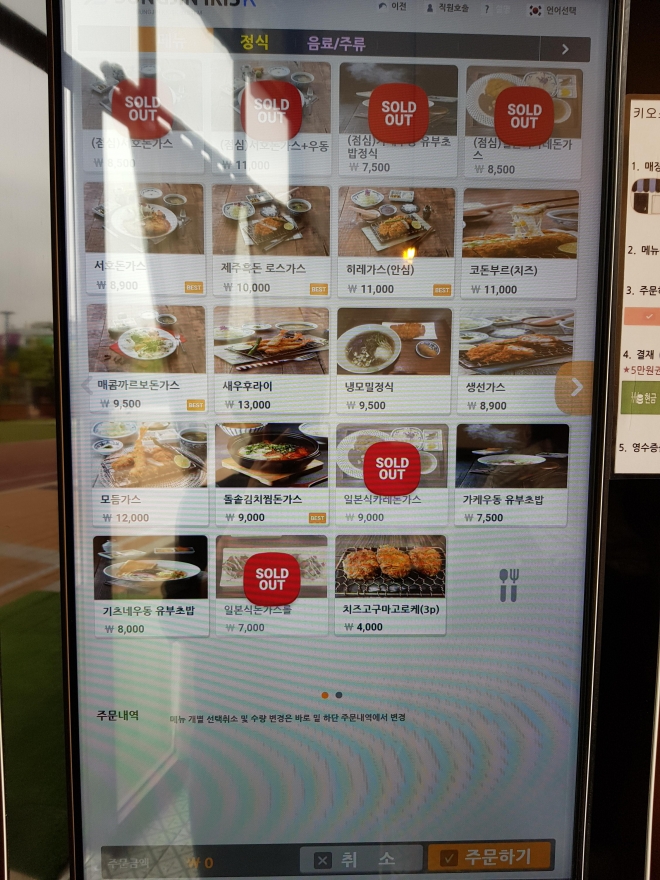 주말 점심이어서 그랬는지 점심 메뉴는 품절로 체크되어 있다.