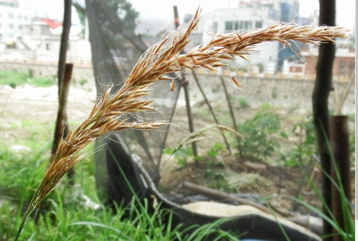 벼과의 여러해살이풀. 뿌리줄기는 짧다. 줄기는 곧추 서며 높이는 60~90cm이고 마디사이는 길고 반들반들하다. 잎은 어긋나게 붙고 넓은 줄모양의 긴 버들잎모양(길이 20~30cm, 너비 1cm안팎)이며 끝은 뾰족하고 질은 연하며 웃면은 껄껄하다. 6월경 줄기끝에 고깔꽃차례(길이 20~30cm)를 이루고 작은 꽃이삭이 한쪽으로 기울어 져 많이 붙는다. 작은 꽃이삭가지는 가늘고 연약하며 매우 껄껄하다. 작은 꽃이삭은 좀 납작한 버들잎모양의 타원형(길이 약 7mm)이며 연한 풀색이나 흔히 보라색이 돌고 4~5개의 꽃으로 되여 있다. 잎겨는 꽃겨보다 좁고 짧다. 바깥꽃겨는 타원형의 버들잎모양이고 끝은 길게 뾰족하며 5개의 줄이 있고 가스랭이는 길며 곧추 선다. 안꽃겨는 긴 타원형이며 가스랭이는 없다. 수꽃술은 3개이다. 열매는 겨깍지열매이다. 김의털아재비에 비하여 식물체는 크고 꽃이삭은 배게 많이 붙어 있다.